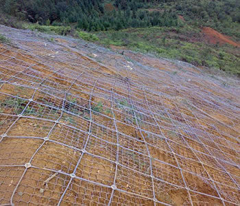 作用原理上类似于喷锚和土钉墙等面层护坡体系,但因其柔性特征能使系统将局部集中荷载向四周均材质:钢丝绳网、普通钢丝格栅(常称铁丝格栅)和TECCO高强度钢丝格栅 匀传递以充分发挥整个系统的防护能力,即局部受载,整体作用,从而使系统能承受较大的荷载并降低单根锚杆的锚固力要求 。